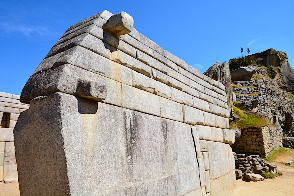 Machu Pic’chu actually means “Ancient Mountain.” The 550+ year old Inca walls and dwellings made of rough stone and clay mortar are beautiful achievements in their own right (See the Inca ruins on right side of above picture), and they are what the majority of tourists pay attention to, but there is something much more prehistoric and superior to see here… the megalithic mortarless construction made from white granite that almost appears to look like something you would see in a futuristic space-age sy-fy film and predates the Inca by thousands upon thousands of years.
