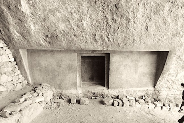 As you climb up into this huge triangular-shaped cave, you see what appears to be a doorway that leads straight into the mountain and cut with laser-like precision into the very hard andesite stone. How could the Inca have shaped this with their softer bronze tools? Naupa Huaca means “Ancient Temple,” and the oral traditions of the Inca state that this was a portal of some kind. On the opposite end of the cave near the entrance is what appears to be a trapezoidal alter or throne.