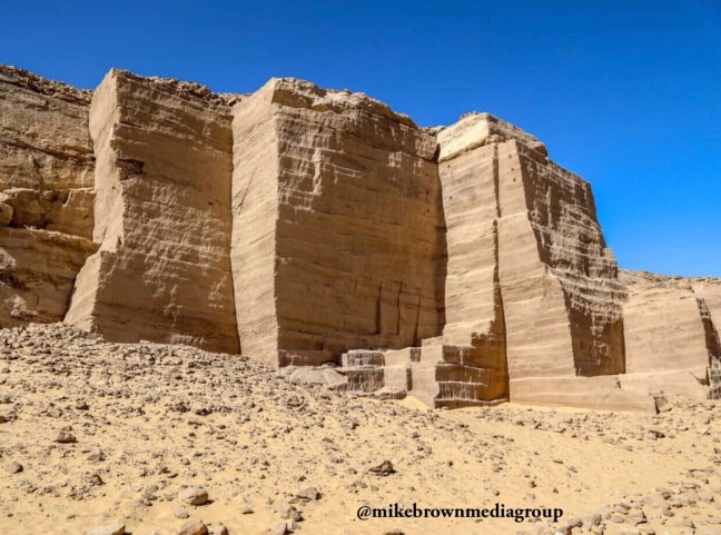 The exterior of the pyramid of Menkaure is enigmatic in that it is presumed to have had the lower courses of the casing stone made of rose granite from Aswan – 500 miles away, while the upper courses were of made of pure Tura limestone – found nearby in Cairo.