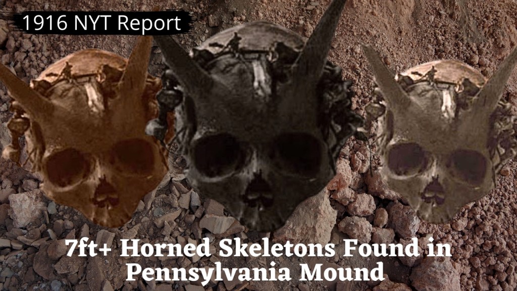 #7) 1916 NYT Report: 7ft+ Horned Skeletons Found in Pennsylvania Mound