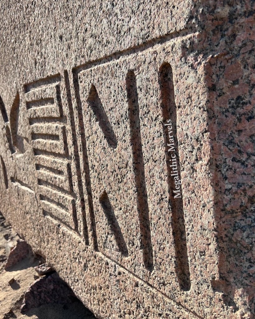 Located in the outdoor portion of the museum, we saw what is the largest statue of a female in Egypt – what is known as the statue of Queen Meritanum. She is said to have been a queen of Egypt during the 18th dynasty. This statue is made of pink granite, weighs 80 tons & stands 9 meters tall! Here’s where things get interesting… I’ve believed for the last decade (for way to many reasons that I can list now) that super structures such as the Great Pyramids & the black boxes of the Serapeum clearly predated the dynastic Egyptians & were made by a previous civilization who possessed some form of lost knowledge & technology. However, I had still believed that many other sites & statues were built later by the dynastic Egyptians. However, after hearing a lecture today from our tour guide Mohamed Ibrahim, I feel like I may have just gone down another rabbit hole… What if the very large mega-ton statues that were precision carved into the hardest of materials such as pink granite (like this one) were actually built by the same megalithic civilization that I believe created the pyramids? What if the Dynastic Egyptians found the pyramids & began to venerate them re-purpose them, & as such, found these massive statues & began to make their own smaller versions of them & dress like them?