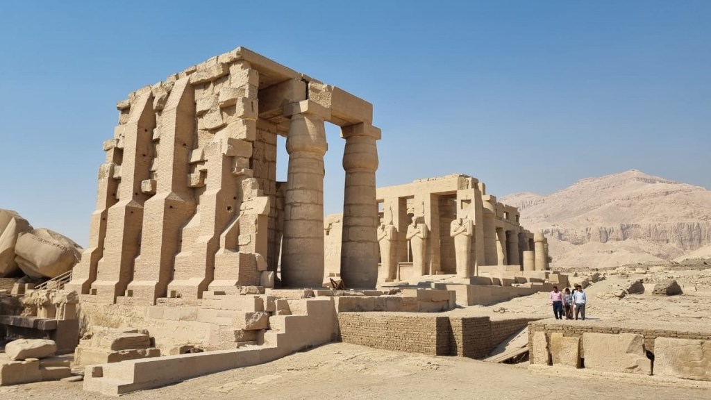 Did Ramesses II really commission this 1000 ton statue & these precision hieroglyphs, or did he come upon an older megalithic site, take upon the name of the titan “Ramesses” & then repurpose the site by building around the megalithic granite ruins with his sandstone walls, columns and statues (see below) that were all made in sections, not solid pieces like the giant statue?