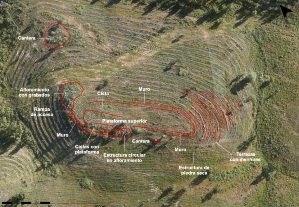 At the site they found a large number of various types of megaliths, including standing stones, dolmens, mounds, coffin-like stone boxes called cists, and enclosures. Standing stones were the most common finding, with 526 of them still standing or lying on the ground. The height of the stones was between one and three metres. One of the most striking things was that they unearthed such diverse megalithic elements that were grouped together in one location. Primitiva Bueno, the co-director of the project said “Finding alignments and dolmens on one site is not very common. Here you find everything all together – alignments, cromlechs and dolmens – and that is very striking.”