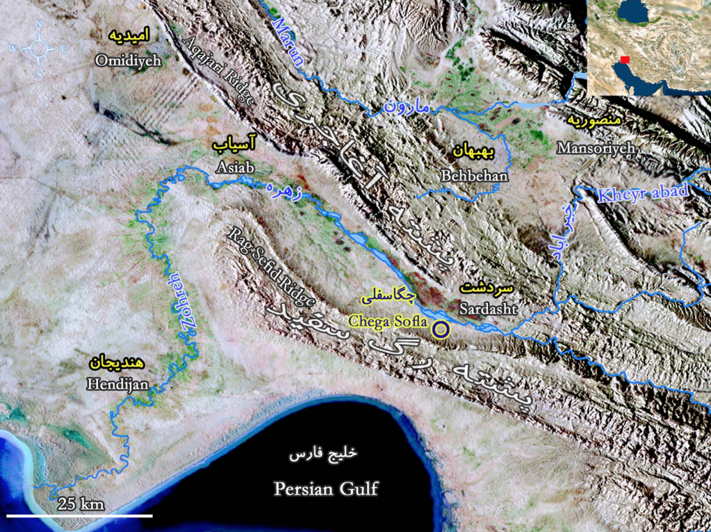 Tol-e Chega Sofla is located about 30 miles south of the town of Behbahan, on the eastern most fringes of Khuzestan province. This site was first discovered in 1970 by Hans Nissen and his colleagues from the Oriental Institute of the University of Chicago.