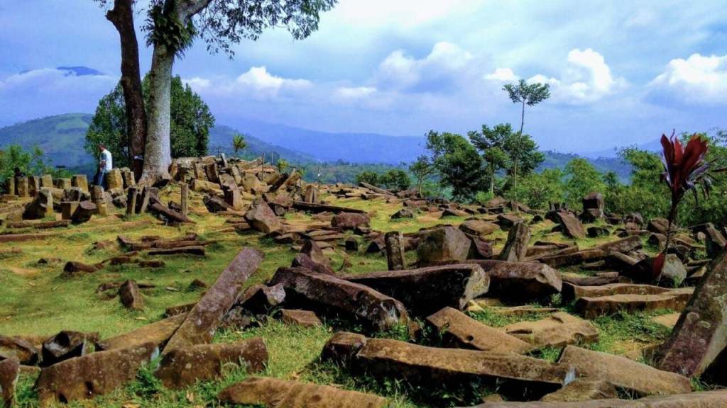 Archaeologist Ali Akbar from the University of Indonesia began working at the site in 2012 and states how everyone of these 50,000 blocks were not originally found on top of the hill, but were carried over 300 feet up the massive hill from somewhere else down below.