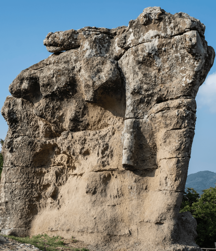 Some archaeologists claim that this is a depiction of “Elephas Antiquus” from the late Pleistocene period, which would have been of similar size and featured the same straight tusks in prehistory. Fossils of this ancient elephant have been discovered in the Pollino Massif mountains, proving that southern Europe was once inhabited by this direct decedent of this Asiatic elephant. Some even wonder if this weathered “statue” is actually a fossilized Elephas Antiquus.