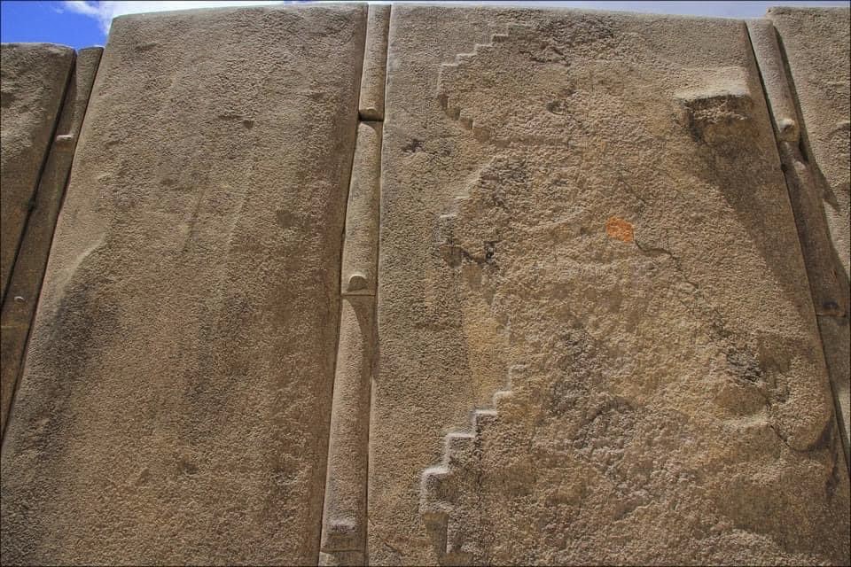 This amazing structure stands at one of the highest points of the site. The Inca named it the โ€œTemple of the Sun.โ€ This ancient architectural master piece is still standing despite the obvious cataclysm that shook this site long ago. The quarry where the granite was mined to craft these super structures came from across the valley and high atop the next mountain top. How could megalithic builders have transported seventy ton blocks up and down mountain peeks? Are the vertical strips in this wall earth quake proof shims that would allow for this wall to move with the earth?