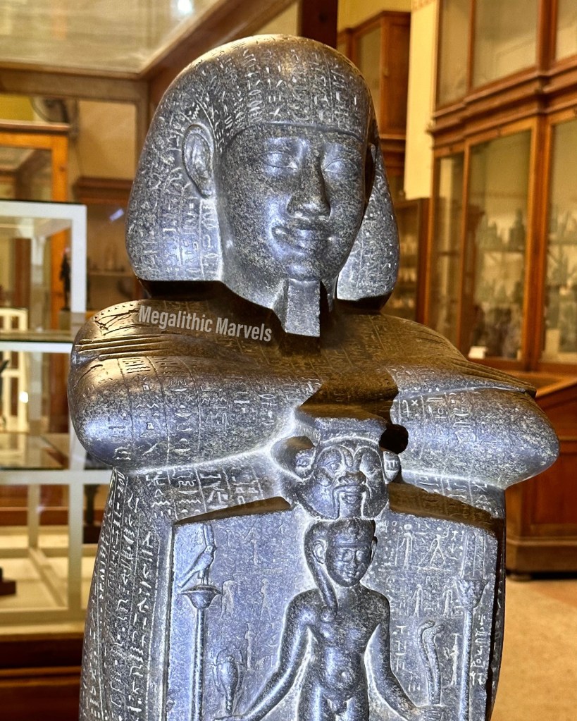 On my recent visit to this museum, I can across this very unique basalt statue that appears to be covered with ancient and intricate… tattoos. This statue is said to represent the ancient priest of Djedhor, who was responsible for the temple of Horus at Athribis, and who was venerated as a holy man.