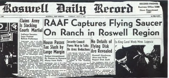 Around noon that day, Blanchard says to his public information officer Lt Walter Haut – send out a press release stating what has happened & what we have, & Hout goes to the local KGFL radio station where they send it out to Western Union, radio stations, newspapers & it reaches the associated press wire. The Roswell Daily Record headlined the story “RAAF Captures Flying Saucer on Ranch in Roswell Region,”
