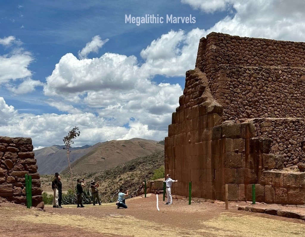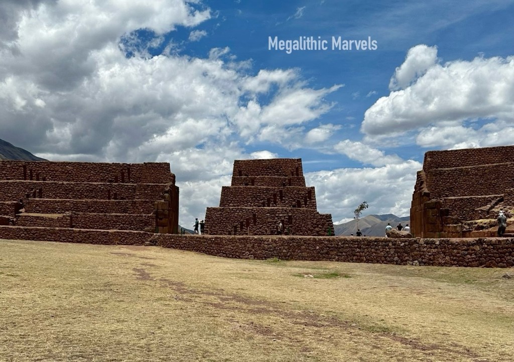 Named Inti Punku “Sun Gate” by the Inca, this red limestone gate features two distinctly different architectural styles. The foundation and lower half is clearly megalithic mortarless engineering, yet the top half appears to have been added at a much later date by either the Wari or Inca cultures, or a combination of both. This upper layer of construction consists of smaller rough stones and clay mortar.