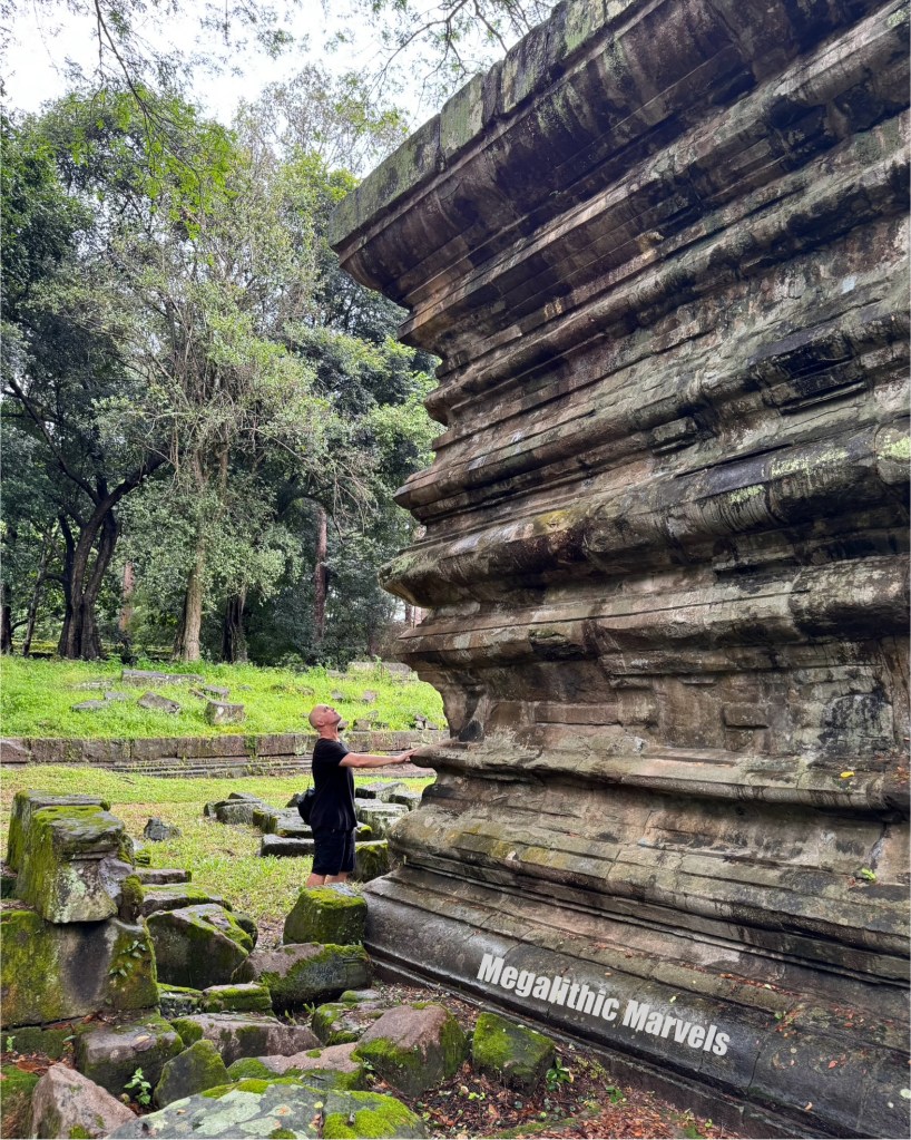 I find it interesting that they are saying that this incredible temple was “badly built.” Now after seeing this site in person, and also after scouring old photos I found from the 1960s restoration, I do not see a base that was badly built. I do see an upper temple that is clearly inferior to the base structure, and therefore I can imagine how the upper portions would have been falling apart. So from what I can tell by viewing these old photos, the restoration team did not take apart the base, but only what had been built on top of it. This then leads me to a final question: is the base of this site much older than the rest of the site that is built on top of it? Was the base engineered by an earlier lost civilization who possessed lost knowledge and ancient technology? Did the Khmer builders arrive circa 800-1400 AD, find this base and build there temple on top of it?