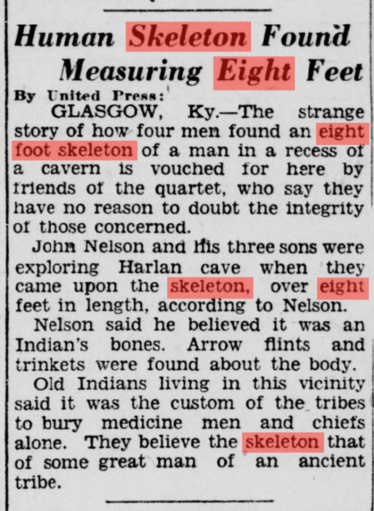 “HUMAN SKELETON FOUND MEASURING EIGHT FEET”