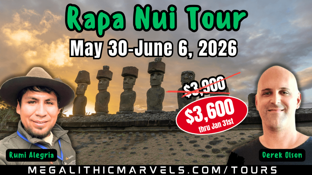 This thoughtfully designed tour includes a pre-tour of Paracas and Nazca, the main tour focusing on the wonders of Cusco, including Machu Picchu, and an optional extension to mysterious Easter Island. You can choose to participate in all segments or select specific parts of the itinerary based on your interests. Guests who book all 3 segments will receive a special commemorative souvenir. Hosted by Derek Olson of Megalithic Marvels and one of Peru’s most renowned tour-guides and historians Rumi Alegria, you will learn the forbidden history of Peru as we go in search of evidence of lost ancient technology. Not only will we see the most famous sites like Machu Picchu, the Nazca Lines, Sacsayhuaman and Ollantaytambo, but we will take you off the beaten path to experience hidden-gem megalithic sites that most tourists miss. This tour includes airport pick-up and drop-off, transportation, lodging, two meals per day, site tickets and English speaking guides. To see the detailed itinerary, and to register, please click the red button below to be redirected to our tour operator’s website.